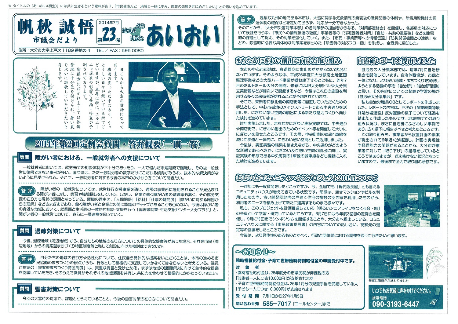 Copyright (C) 2020 - 2026 "大分市議会議員 帆秋誠悟(ほあきせいご)" All Rights Reserved. Powered by GT-SYSTEM